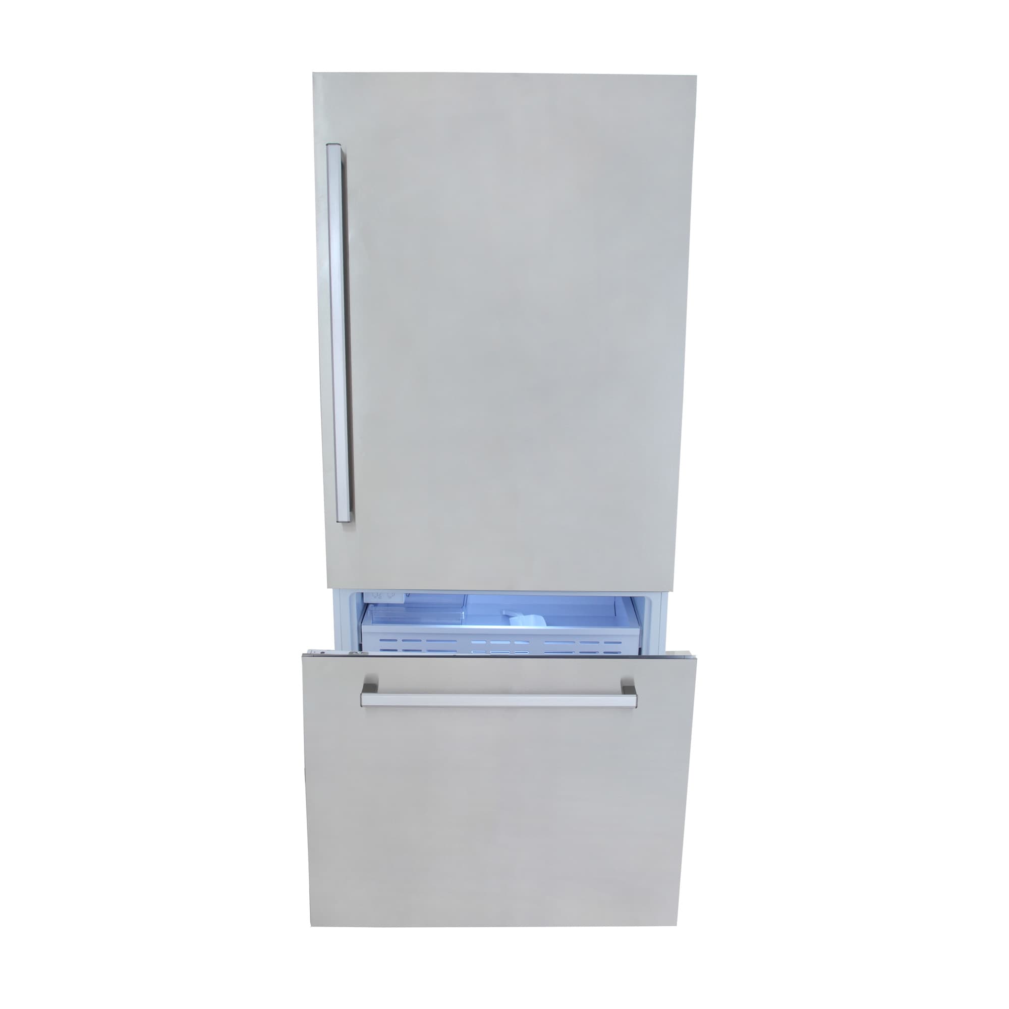 The Kucht KR360SD Refrigerator has a modern and sophisticated aesthetic with a new design of more robust doors. Inside, it is divided with glass shelves to optimize organization and storage. Its total storage capacity is 19.8 cu. ft. The automatic defrost system makes it easy to clean the refrigerator. In addition, it allows a custom panel to be installed on the front face of the appliance that matches the rest of your cabinetry to create a consistent and streamlined look across your whole kitchen.