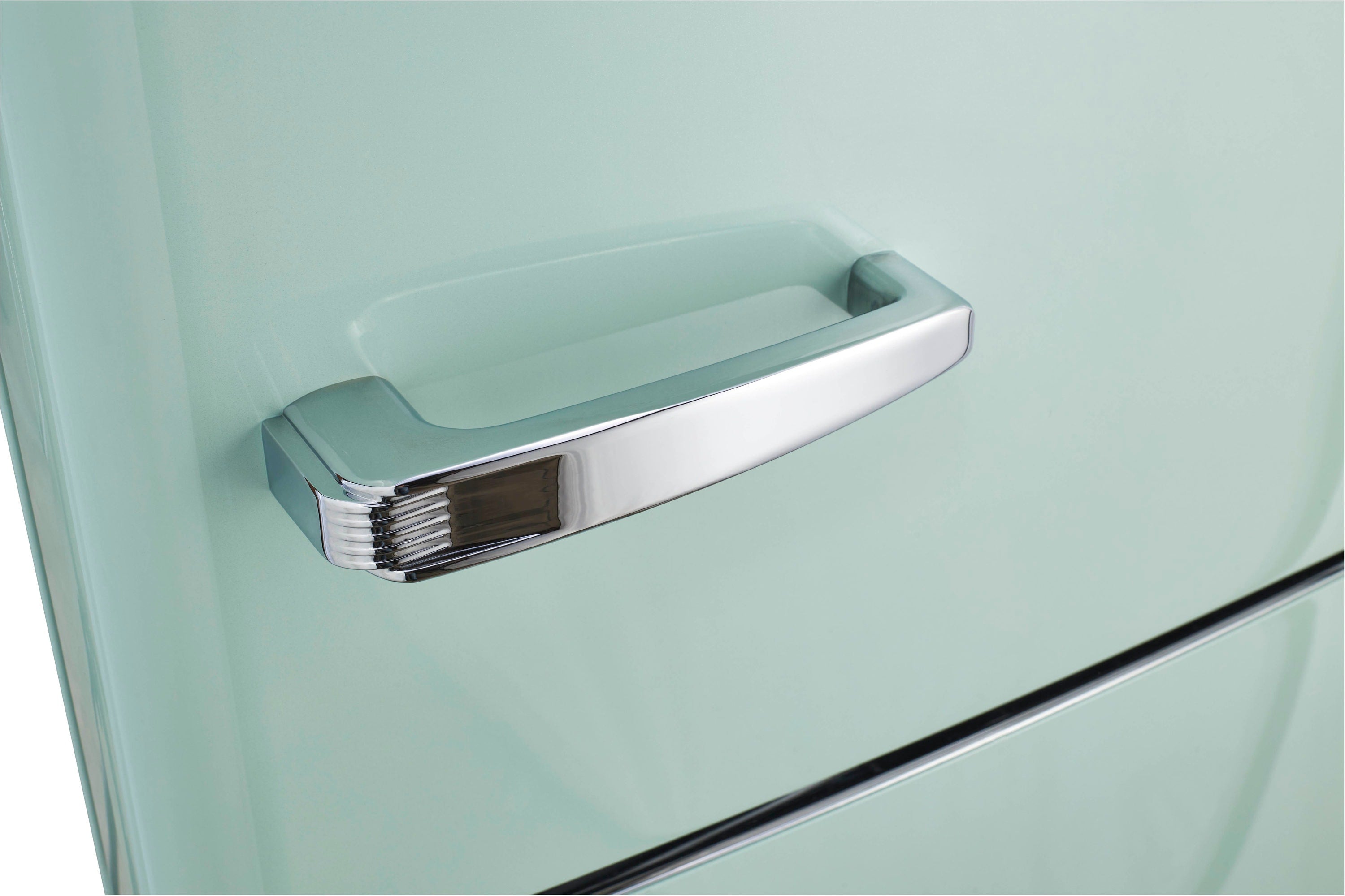 When you’re looking for more storage room, this 12 cu. Ft. Classic retro bottom-mount refrigerator comes with ample space to keep all your fresh and frozen foods, packaged in an eye-catching throwback design. Enjoy the ease of top-mounted fridge space that lets you reach in and find what you need without bending down. Plus the freezer bottom is designed to maximize storage for items you need less often.