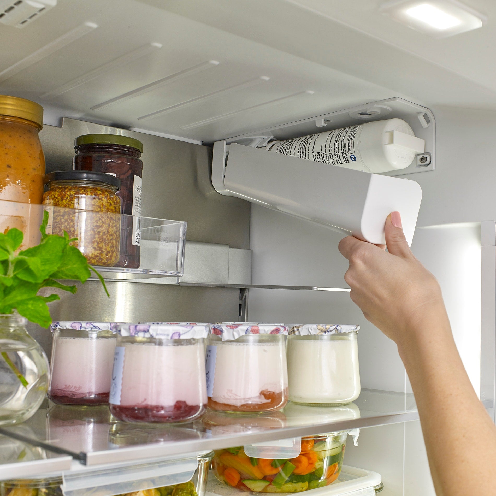 • Thoughtfully tucked away is the internal water dispenser for refreshing, pure water at the touch of a button, or push of a nozzle, without disrupting the exterior design