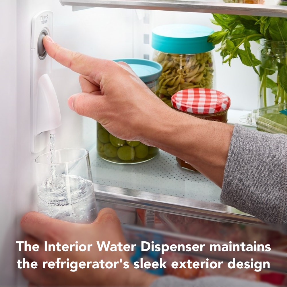 The Interior Water Dispenser maintains the refrigerator's sleek exterior design
