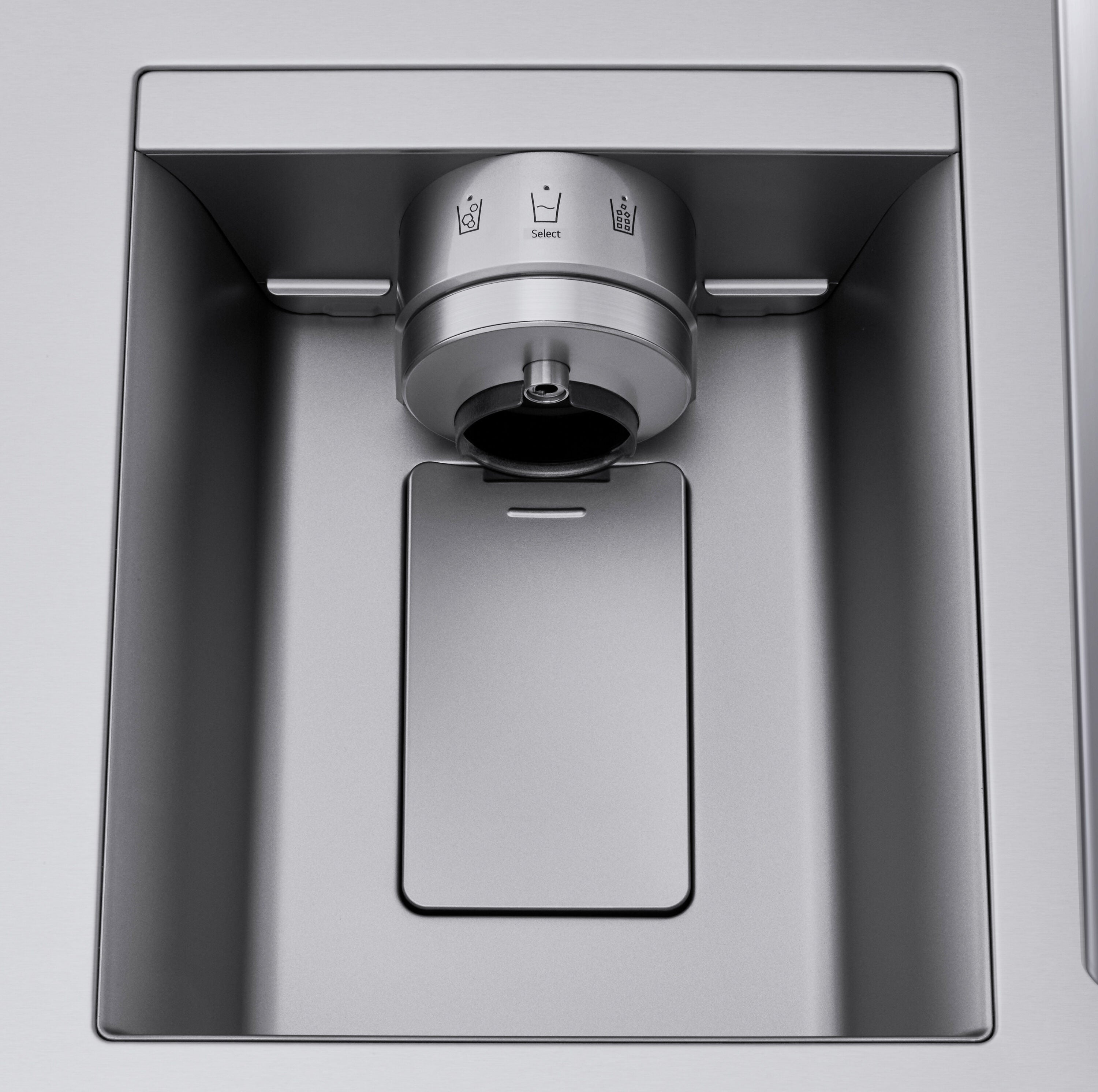 • Finally, an ice and water dispenser that can accommodate just about any container.