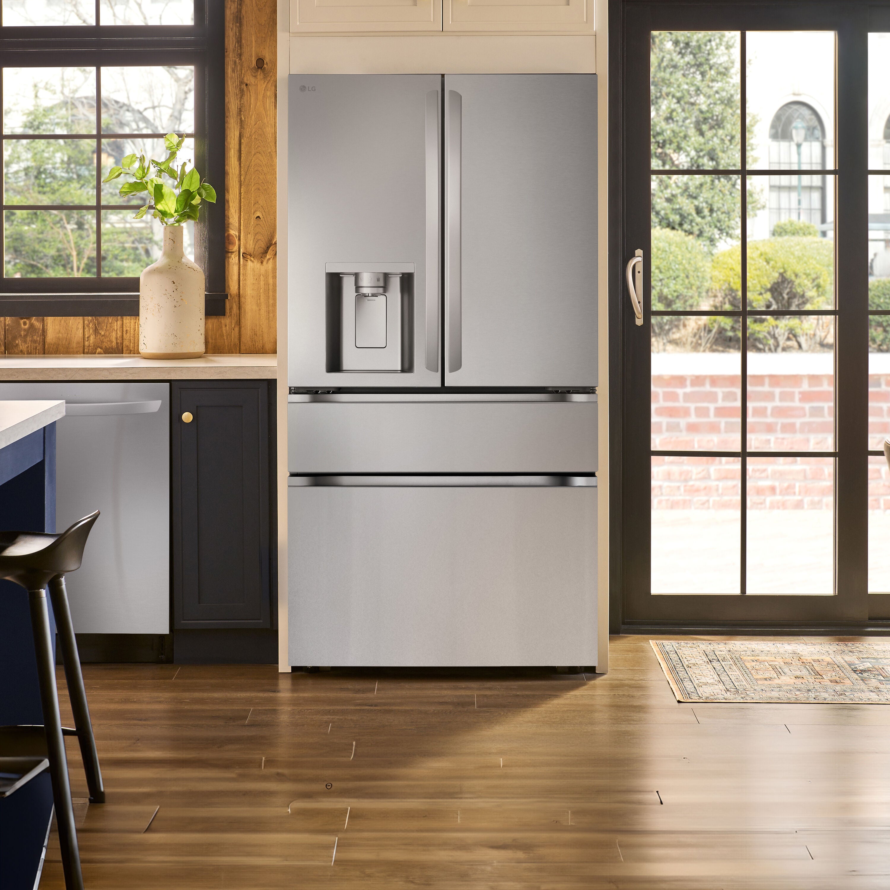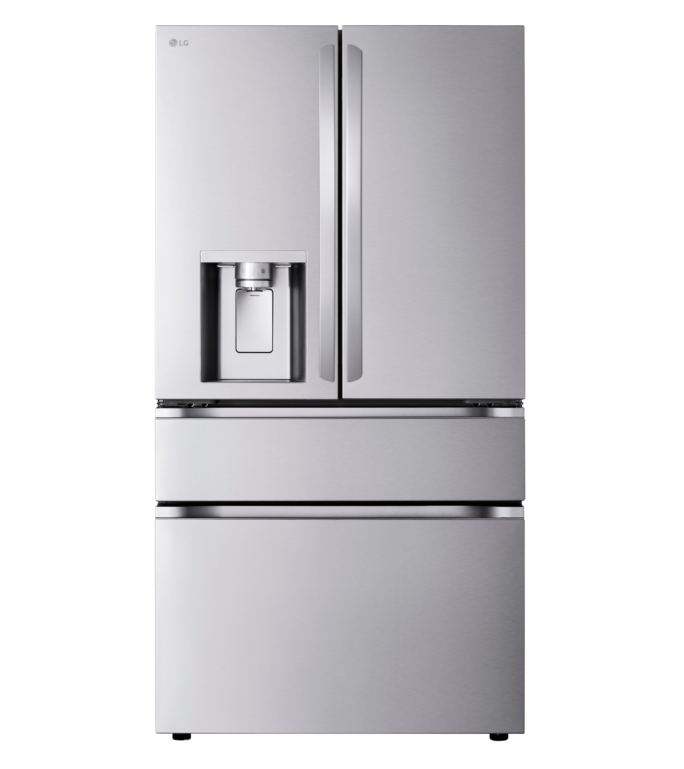 • LG Standard-Depth 28.6-cu ft 4 -Door Smart Compatible French Door Refrigerator with Dual Ice Maker with Water and Ice Dispenser ( PrintProof Stainless Steel ) ENERGY STAR Certified