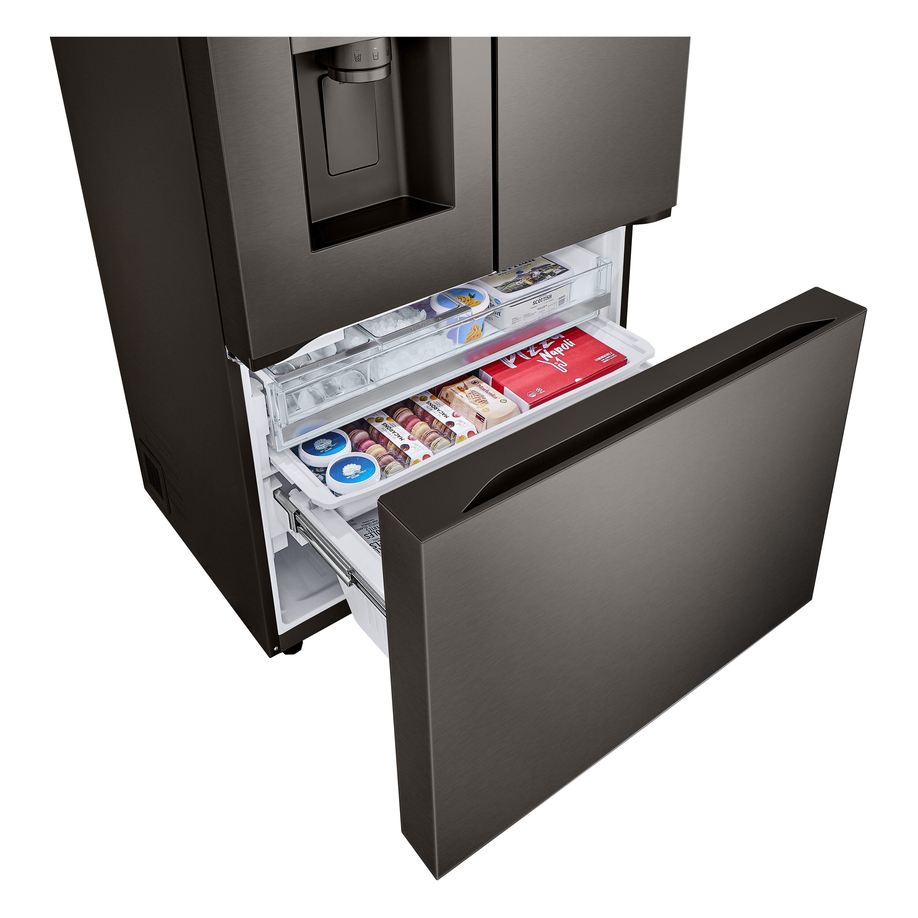 • LG Counter-Depth 4 Types of Ice 25.5-cu ft 3 -Door Smart Compatible French Door Refrigerator with Dual Ice Maker with Water and Ice Dispenser ( PrintProof Black Stainless Steel ) ENERGY STAR Certified