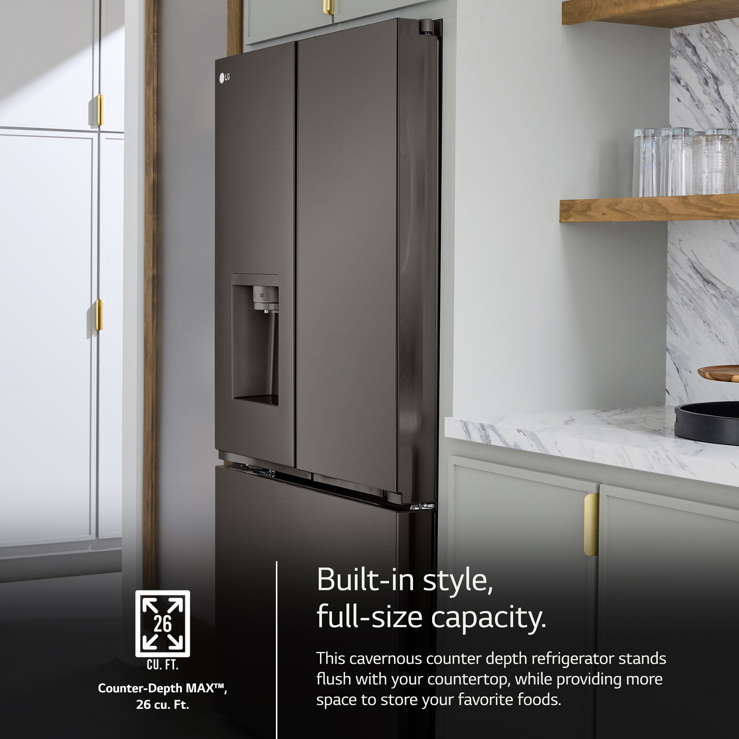 • LG offers the largest counter depth capacity, so you no longer sacrifice storage space for a built-in look