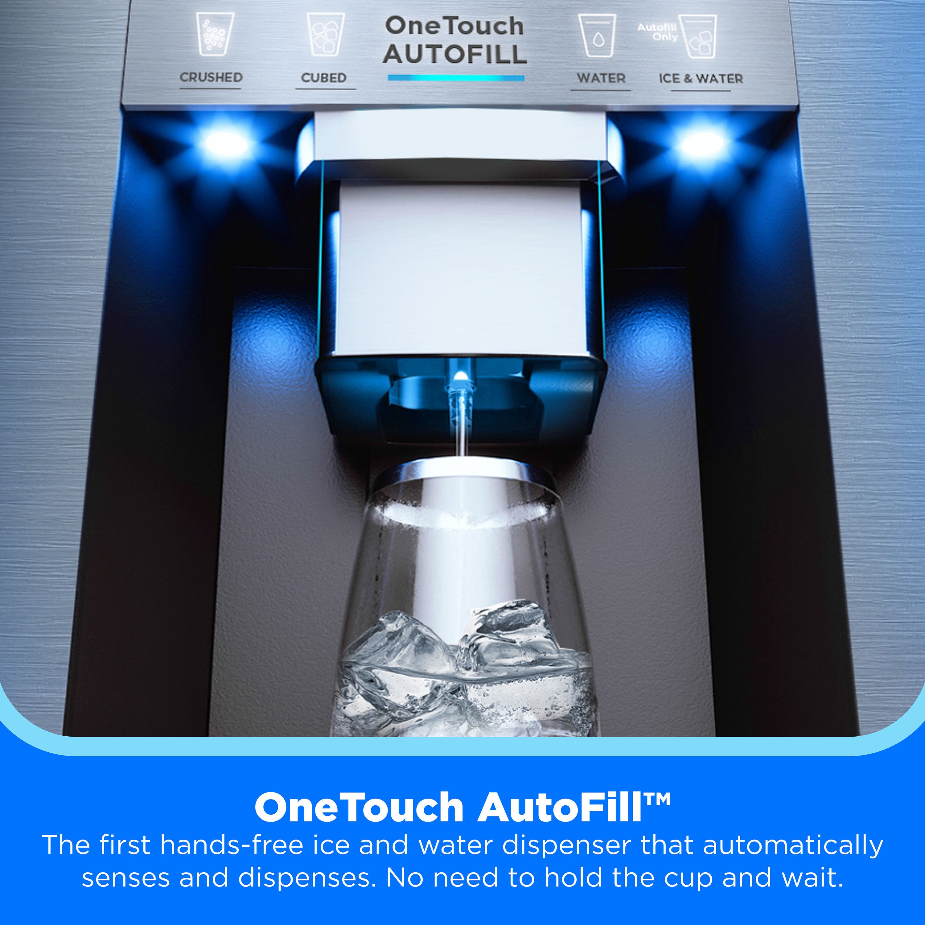 OneTouch AutoFill™: The industry’s first hands-free ice and water dispenser that automatically senses and dispenses—no need to hold the cup and wait.
