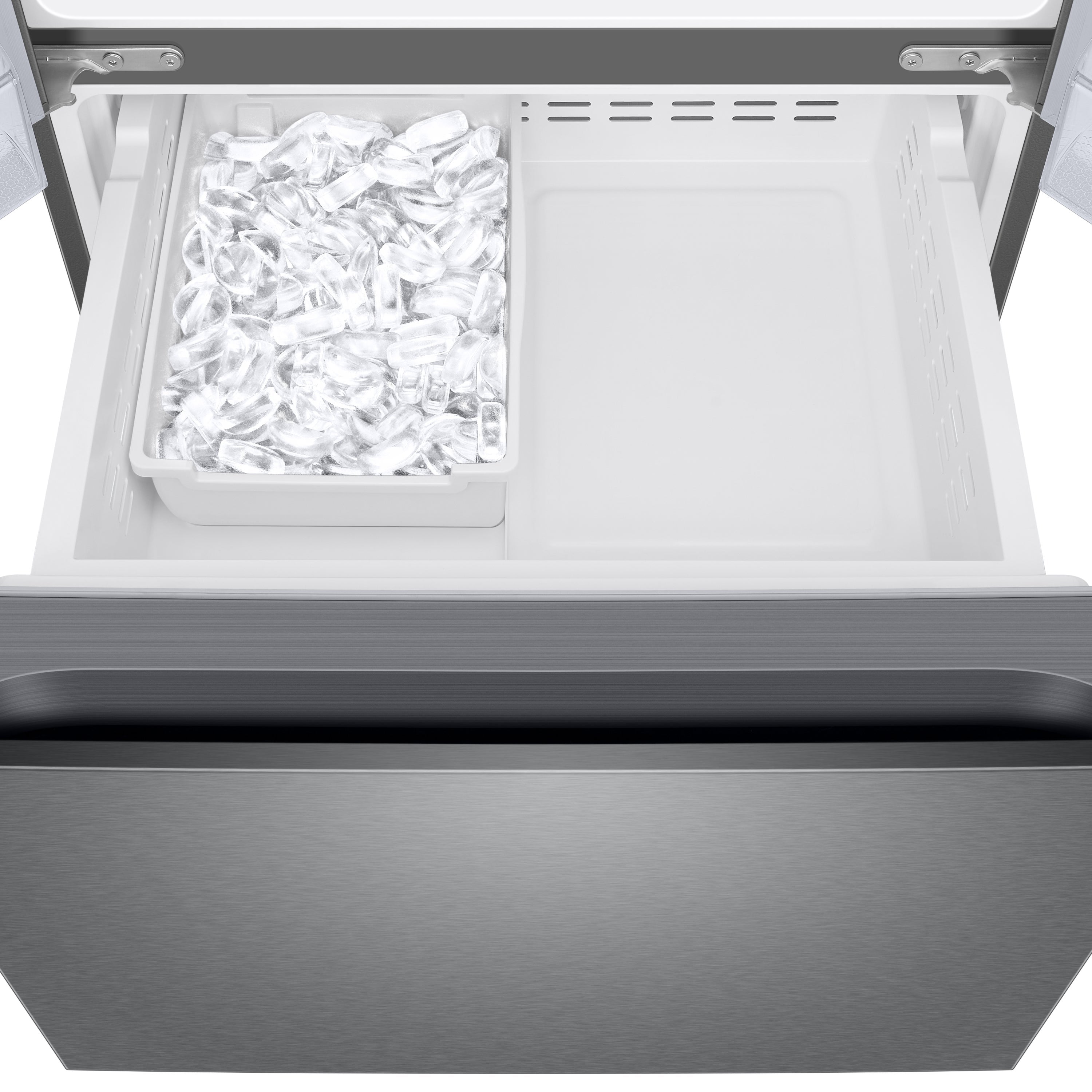 • Samsung Standard-Depth 22-cu ft 3 -Door Smart Compatible French Door Refrigerator with Ice Maker with Water Dispenser ( Fingerprint Resistant Stainless Steel ) ENERGY STAR Certified
