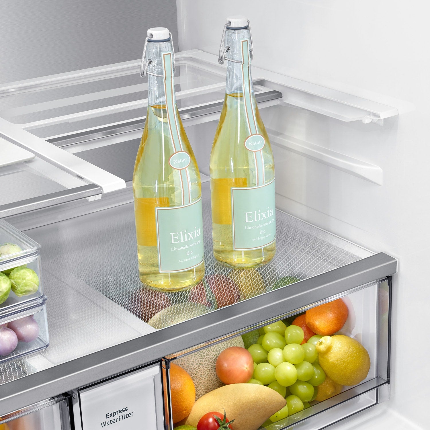 Slide-in Shelf: The adjustable slide-in shelves are flexibly designed to fit in just half of the fridge, so you can slide them back to create more room for tall and bulky items