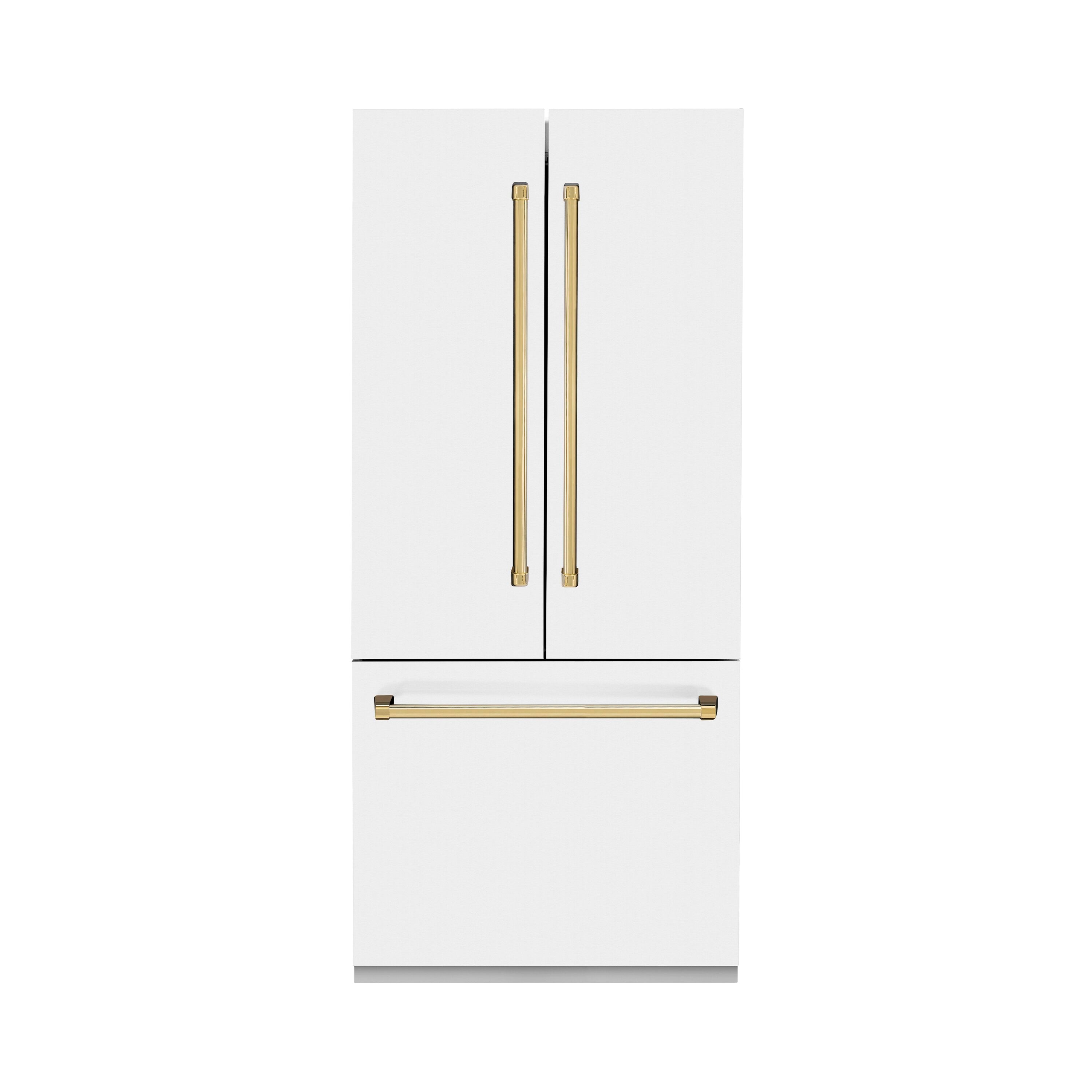 ZLINE KITCHEN & BATH Counter-Depth 19.6-cu ft 3 -Door Built-In French Door Refrigerator with Ice Maker with Water Dispenser ( Stainless Steel with a White Matte door and Polished Gold Handle ) ENERGY STAR Certified