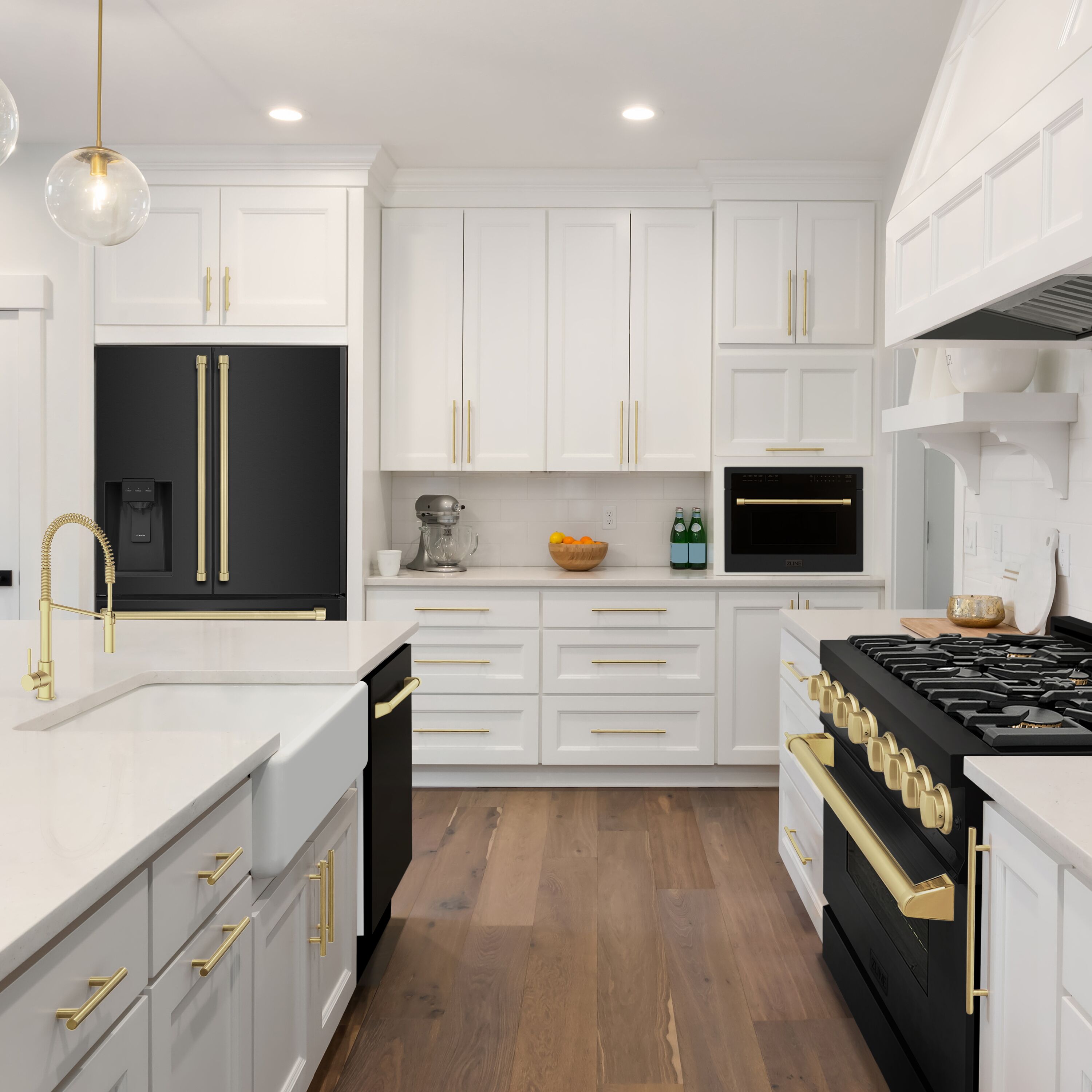 Autograph Edition Counter-Depth Design - Create a timeless look in your kitchen with a counter-depth refrigerator featuring ZLINE’s luxurious Autograph Edition Champagne Bronze traditional handles, a stunning fingerprint-resistant black stainless steel exterior finish, and a beautiful Bright White interior that delivers superior durability