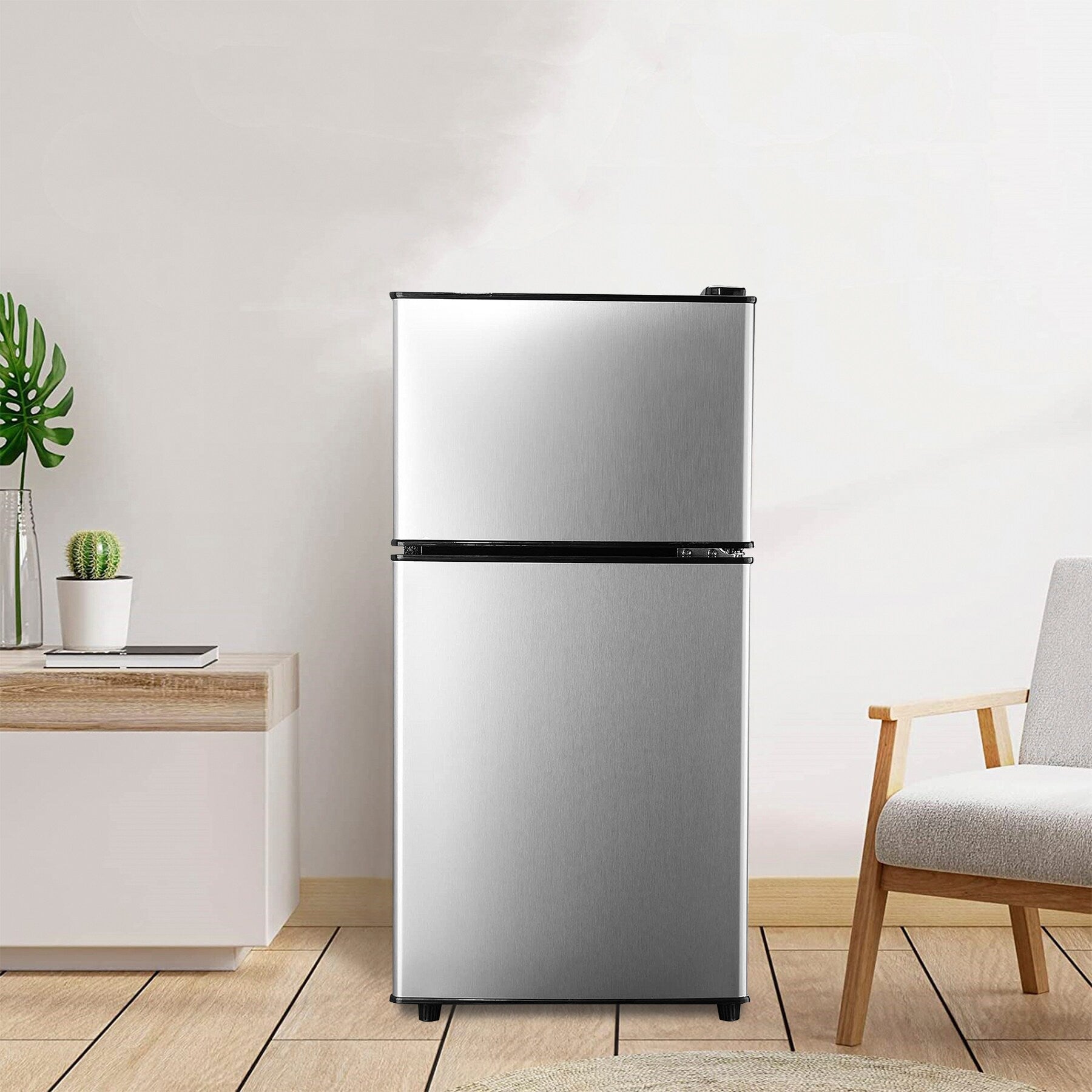 Top freezer design: large capacity of 3.5 cu ft is divided into refrigerator and freezer areas, the fridge has large 2.3 cu ft fresh food capacity for keeping foods organized and 1.2 cu ft freezer capacity for storing frozen foods, which are more spacious than ordinary mini refrigerators and can keep food fresh or frozen.