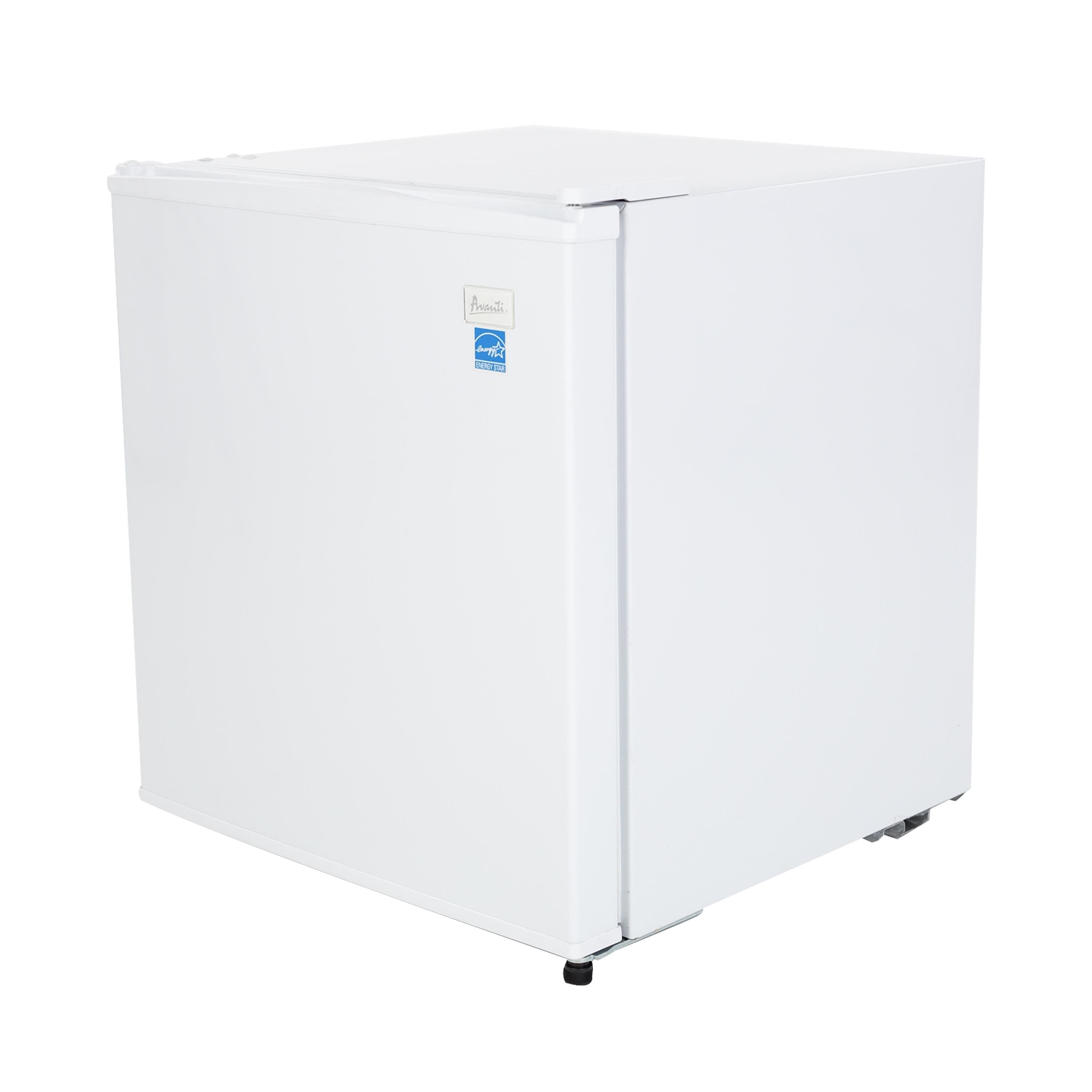 Keep your snacks and favorite beverages close by in the compact, 1.7 cubic foot refrigerator from Avanti. The perfect mini fridge for the office, dorm, man cave, she-shed, bar, bedroom, or anywhere you need a little extra refrigerator space. The built in door shelves, including a 2 liter storage compartment, offer space for drinks and condiments. Use the adjustable, removable shelving to arrange salads, fruits, snacks, and other foods for easy access throughout the day. This compact fridge features a compressor cooling system and automatic defrost, so your foods remain fresh and cold. Select the right settings for your items with the full range temperature control.