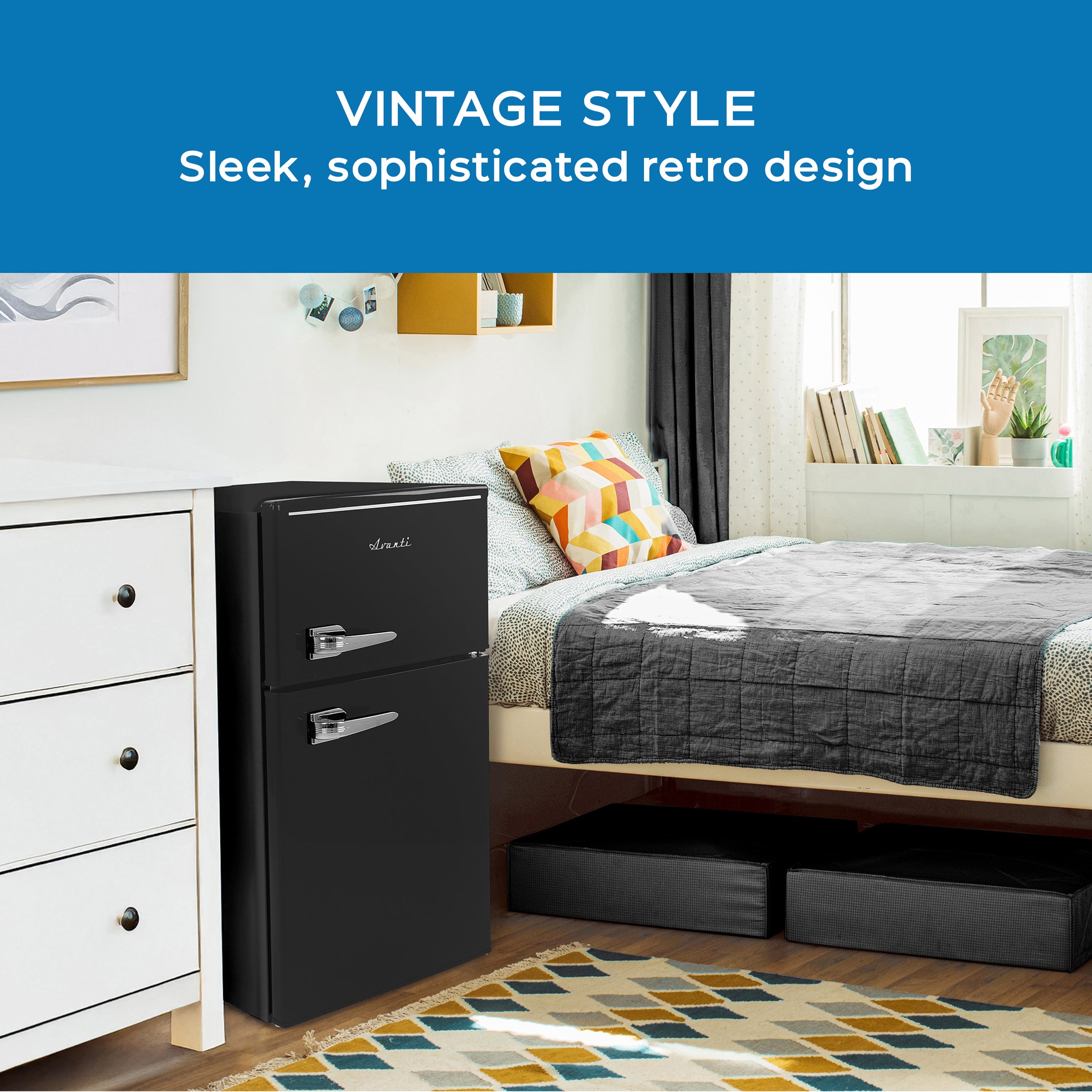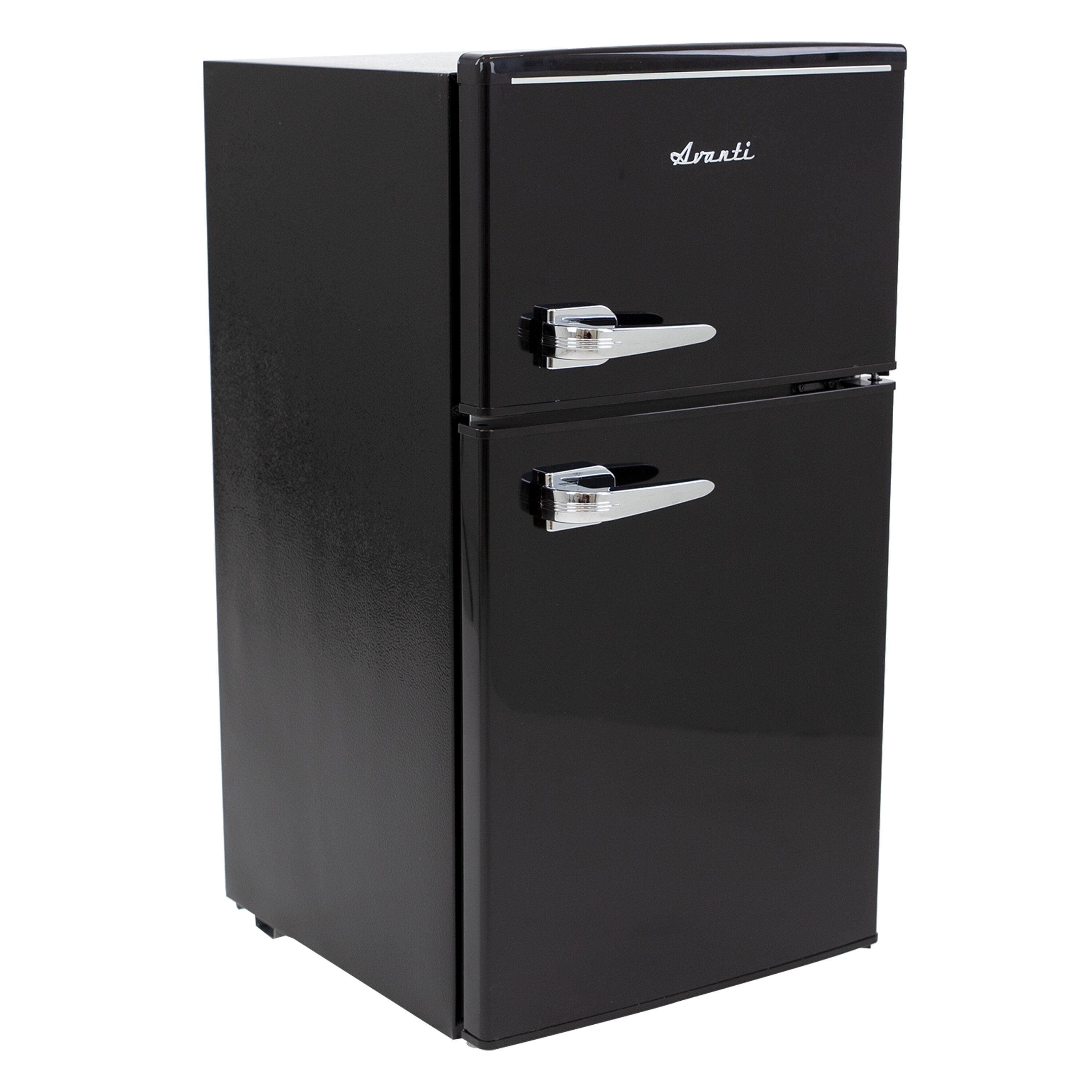 This retro-inspired compact refrigerator combines vintage charm with modern functionality, delivering a cool, colorful, and sophisticated aesthetic that enhances any setting. With a capacity of 3.0 cubic feet, this double-door freezer/refrigerator is the perfect space-saving solution for your home, dorm room, office, or recreational area. Its thoughtful design ensures that your favorite foods and beverages are always within reach, making it an ideal addition to small spaces where style and practicality matter most. The double-door design offers convenient access to all your essentials. The top freezer section provides ample space for storing frozen foods in bulk, helping you save money by reducing trips to the store. Meanwhile, the refrigerator section is designed to keep salads, fruits, snacks, and beverages fresh and easily accessible throughout the day. The manual defrost system allows you to maintain optimal cooling performance with minimal effort, giving you full control over the unit's temperature settings. Storage is made simple with built-in door shelves and a beverage can dispenser. The door design accommodates a variety of items, including two-liter bottles, assorted condiments, and up to six 12-ounce cans, ensuring that your fridge stays organized and functional. Inside, two adjustable and removable glass shelves provide versatility in food storage, allowing you to customize the layout to suit your needs. These glass shelves are easy to clean and provide a clear view of your food items for added convenience. The fridge is equipped with mechanical temperature controls, allowing you to adjust the cooling settings quickly and easily with the turn of a dial. This feature ensures that your food and beverages are stored at the perfect temperature for maximum freshness. The retro-inspired exterior design adds a chic and timeless touch, making this compact fridge not only a practical appliance but also a stylish focal point in any room. Backed by Avanti's 1-year manufacturer-limited warranty, this refrigerator offers reliability and peace of mind. Whether you’re looking to enhance your kitchen, upgrade your dorm, or add convenience to your office space, this compact fridge delivers on all fronts. Its combination of retro style, modern features, and compact efficiency makes it a standout choice for those who value both form and function.