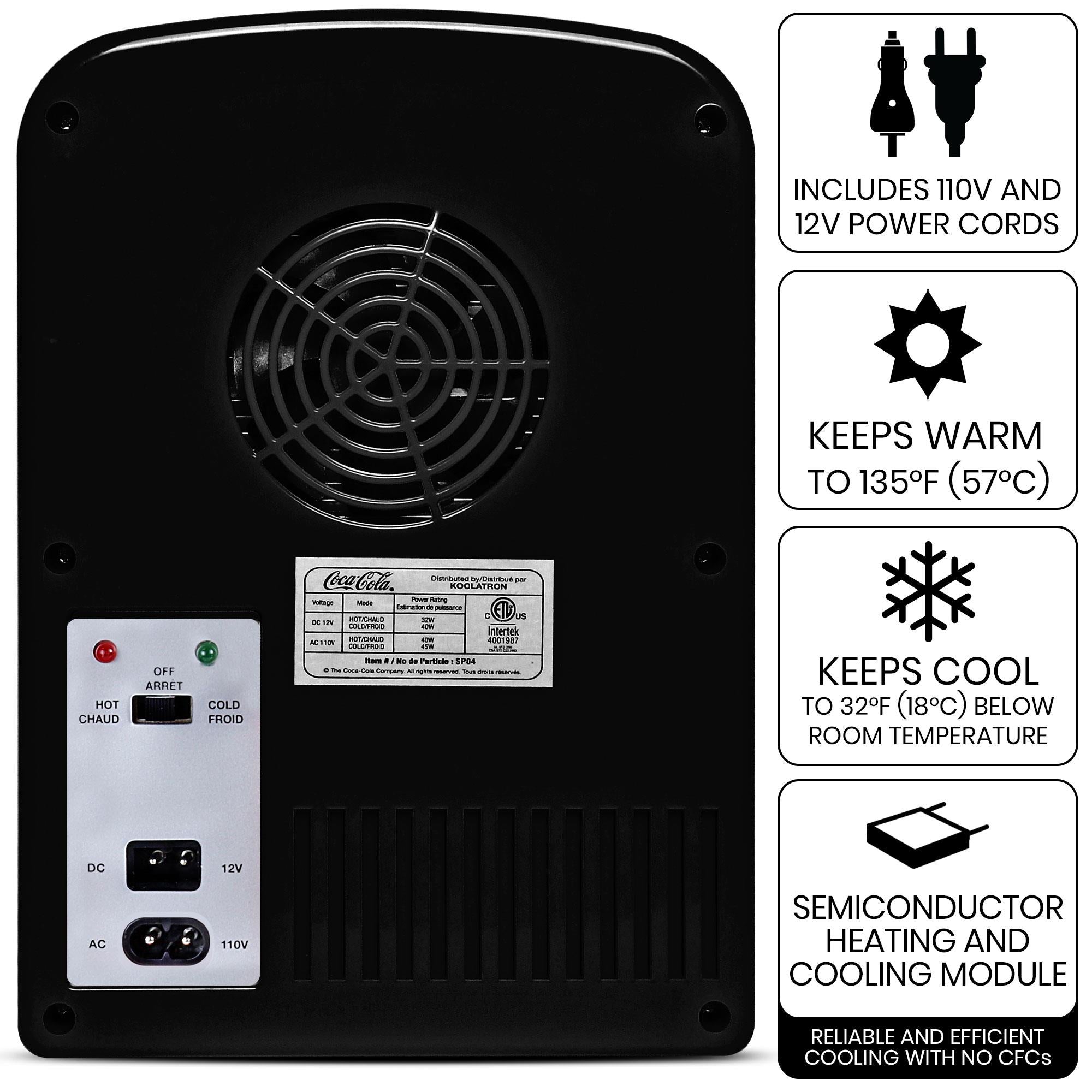 This sleek black mini fridge, featuring the contemporary Coke Zero logo, is a must-have for students or collectors. With efficient thermoelectric technology and AC and DC adapters, this mini fridge lets you chill your favorite soda and snacks or warm your lunch at home or on the road. Its compact size makes it the perfect accessory for your home, office, dorm, or RV. Whether you're studying late at night or embarking on a road trip adventure, this mini fridge ensures your beverages and snacks are always at the perfect temperature. Upgrade your space with this versatile mini fridge and enjoy the convenience it brings to your daily life.