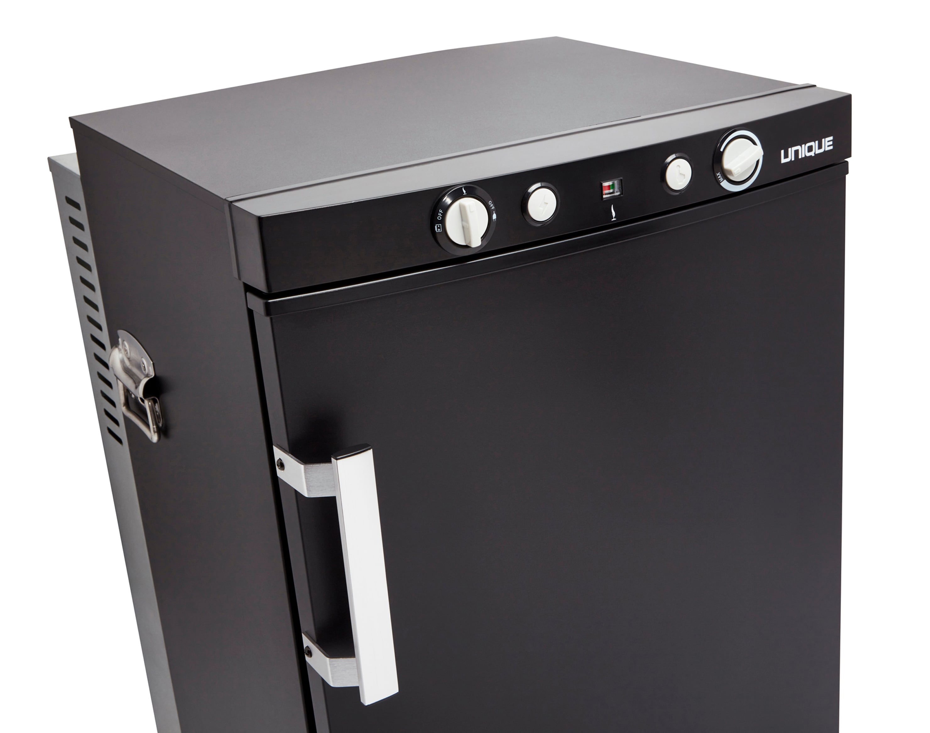 This Unique 3.4 cu. Ft. refrigerator provides an easy, low cost solution for extra fridge/freezer capacity at your cabin/cottage. Place on your porch or outbuilding, the Unique 3 becomes your beverage and ice cream cent re. With 3-way operation, the Unique 3 has the ability to function on 110 V, 12 V or LPG. Whether camping, using at your cottage or keeping food cold on the way up to camp, it is as versatile as you are.
