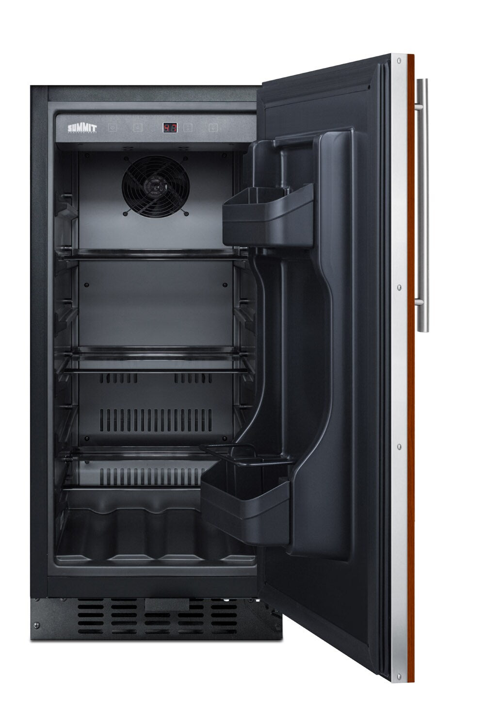 Summit offers a large selection of 32" high ADA compliant appliances, with quality choices for built-in or freestanding use in 15" wide spaces.The ALR15BIF is a 2.2 cu.ft. all-refrigerator with a front-breathing system for built-in use. The door features an integrated stainless steel frame designed to accept custom overlay panels, allowing you to match your refrigerator to your cabinetry for a customized look (panel size: 27 3/8" H x 14 11/16" W). This unit has a black cabinet and sealed back for easier cleanup. At just under 32" high, it's perfect for fitting under lower counters following ADA guidelines.Inside, the ALR15BIF features a jet black finish and convenient frost-free operation for minimum maintenance. Fan-forced cooling helps to stabilize the temperature inside. Adjustable glass shelves offer spill-proof storage and two door racks are ideal for keeping condiments and bottles within reach. This unit comes with a digital control panel for easy temperature management, with a temperature readout viewable in Celsius and Fahrenheit. Additional features include an open door and high temperature alarm, temperature memory function, and Sabbath mode to allow users to disable certain electrical functions during periods of observance. Recessed LED lighting offers an attractive, energy efficient view. The ALR15BIF is approved for both residential and commercial use, and is ETL-S listed to NSF-7 commercial standards. Additional choices for 15" wide spaces, as well as ADA compliant applications, can be found in Summit's extensive product catalog.