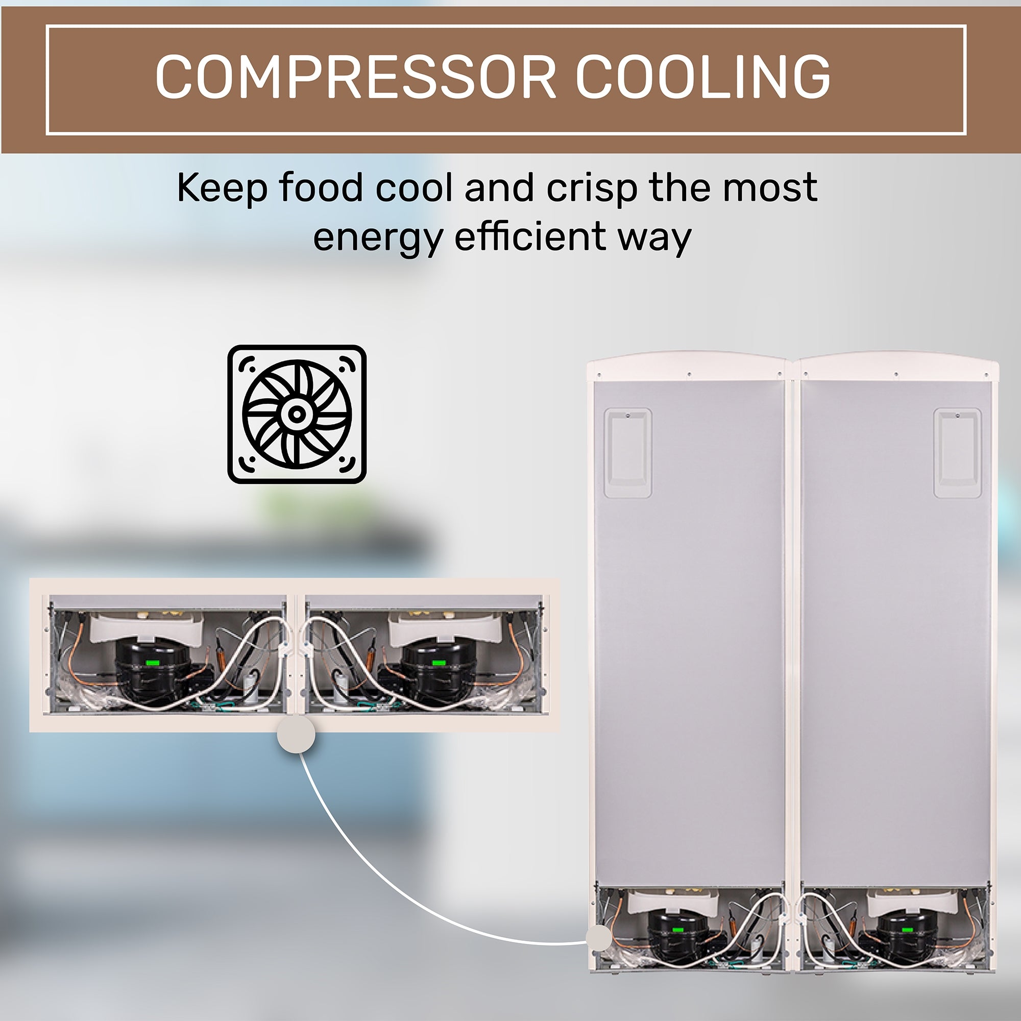 • Powerful compressor motor allows the units to chill to lower temperatures and cool more consistently