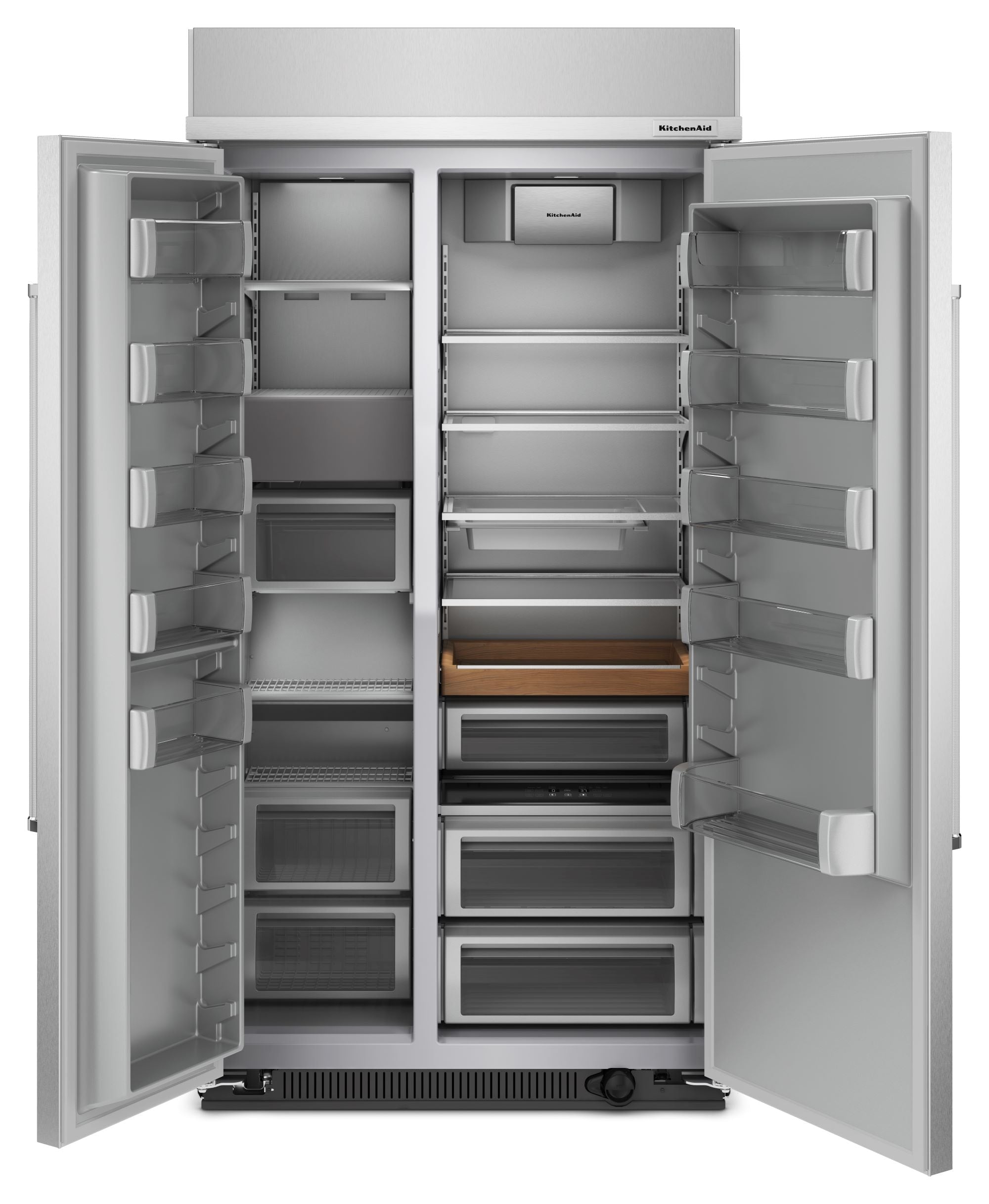 This premium 42” built-in refrigerator features PrintShield™ Finish to resist fingerprints outside, and has innovative storage inside. Like the Under-Shelf Prep Zone with included bakeware, and the moisture- and stain-resistant Wood-Look Pull Out Tray that keeps ingredients beautifully organized. Plus, optimal temperatures for ingredients are maintained with the ExtendFresh™ Plus Temperature Management System.