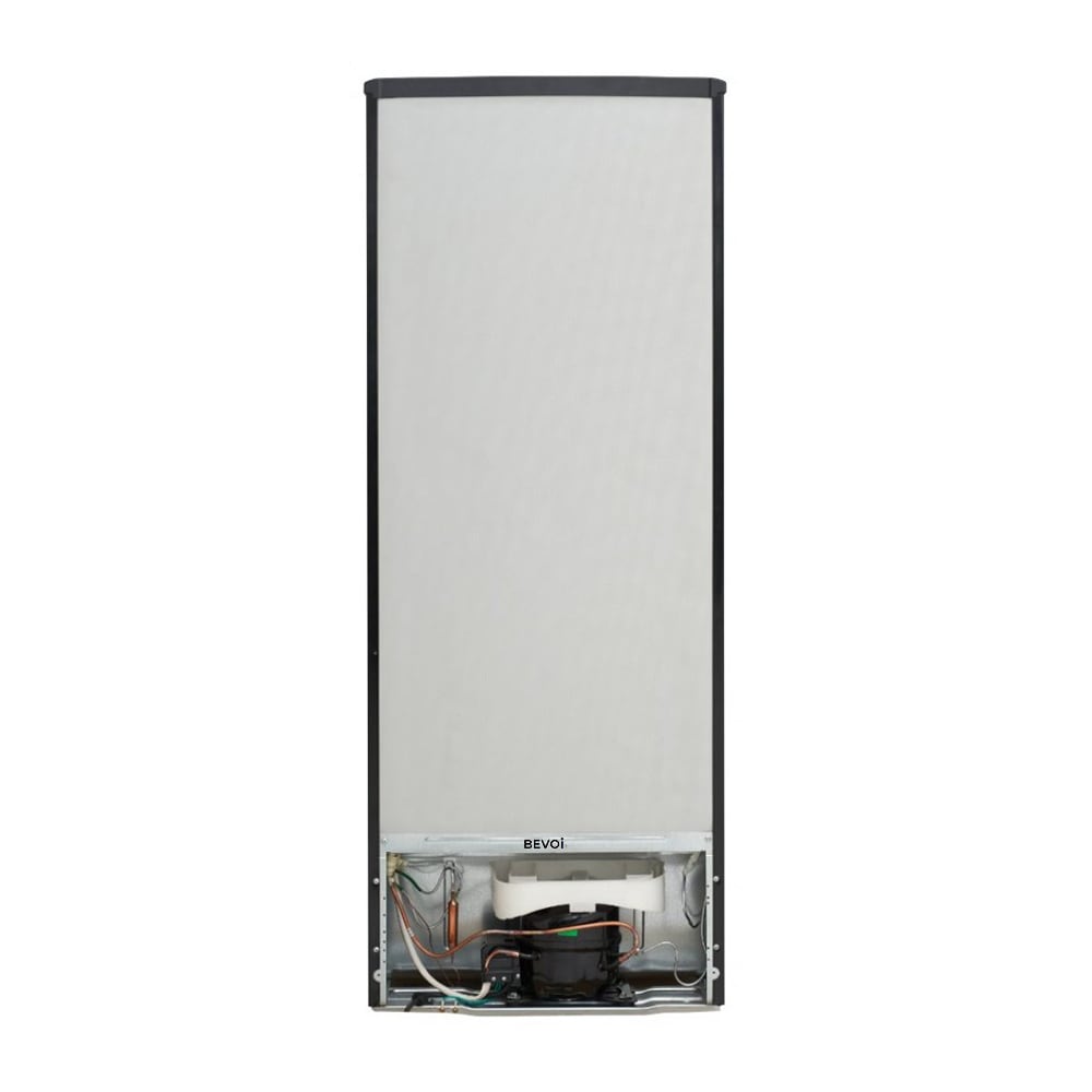 This top freezer apartment-size refrigerator by Bevoi is a great fit in the kitchen. The refrigerator features 7.3 cu. Ft. Total capacity, large crisper drawer, gallon bins, glass shelving.