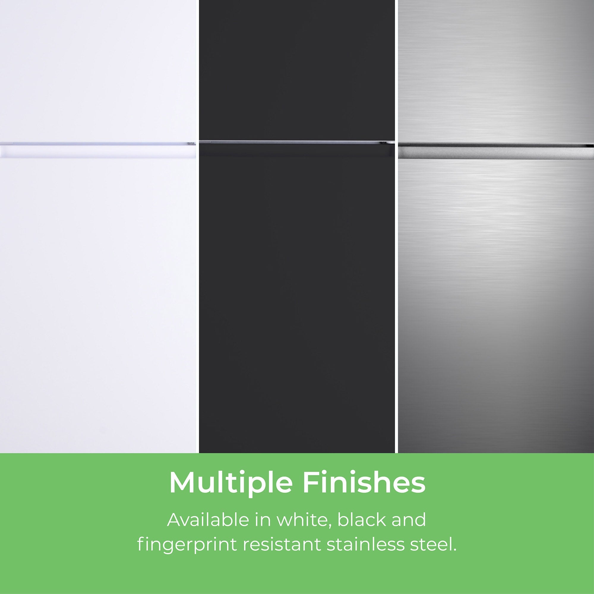 2 clear full-width freezer door bins & 3 gallon-sized clear refrigerator door bins to store beverages and more