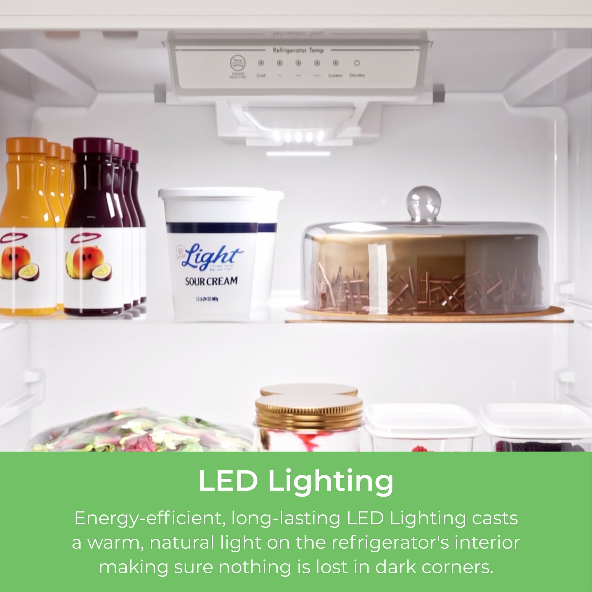 Standard depth fridge stores plenty of food and drinks