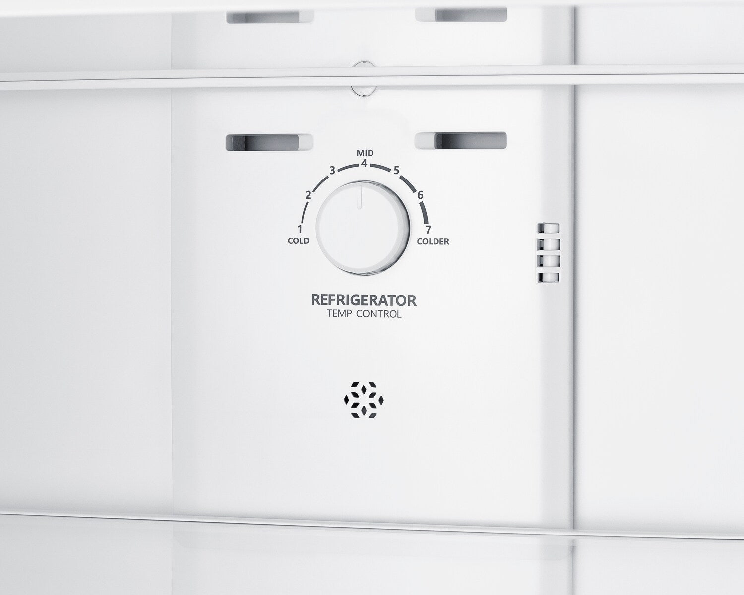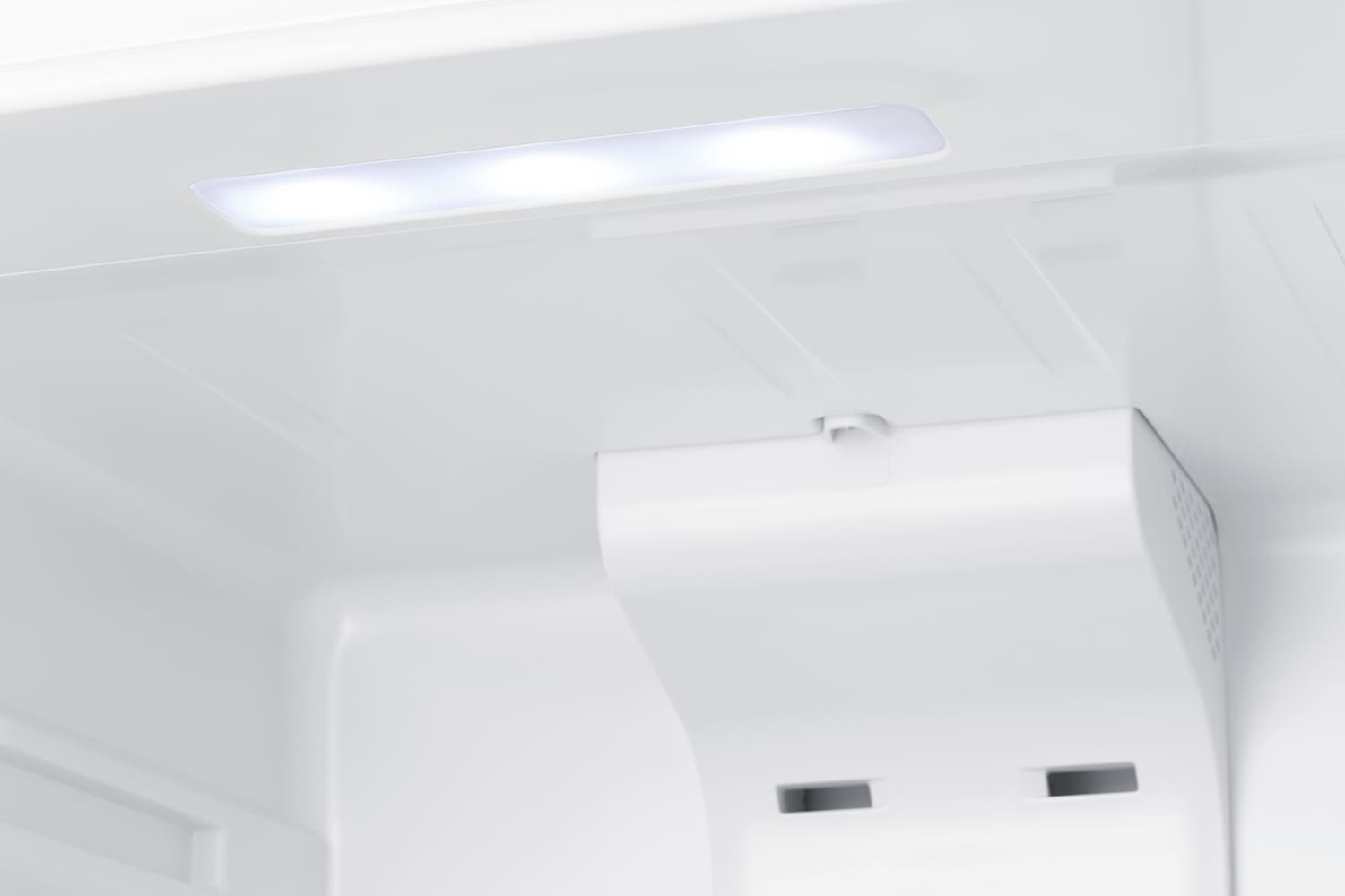 Multiple door shelves in both the refrigerator and freezer compartments offer convenient storage for condiments and bottles