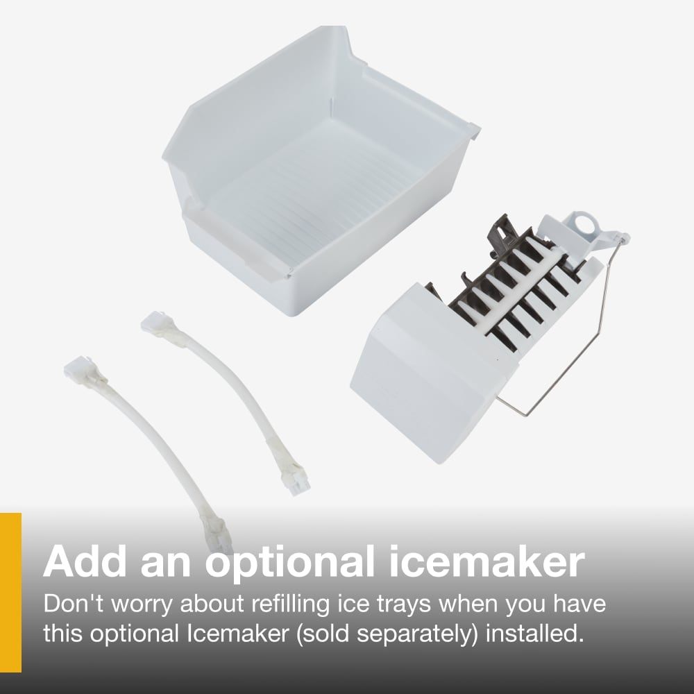 Don't worry about refilling ice trays when you have this optional Icemaker installed